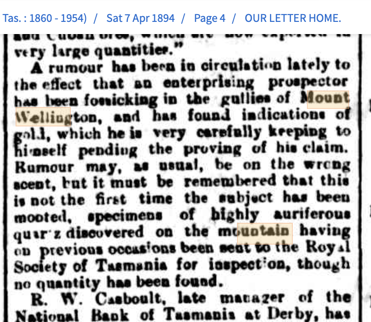 A few small mining concerns operated for a short time on the mountain. Lime and gold were mined above the Hobart Waterworks. It is believed that no gold or other precious metals of any great value were found. Slate was split during the convict era below the Junction Cabin area at Wiggins Slate quarry. Similarly, the quality was not great. The four photos above are from the Tasmanian Mail from the 1898 Mt Wellington gold mine.